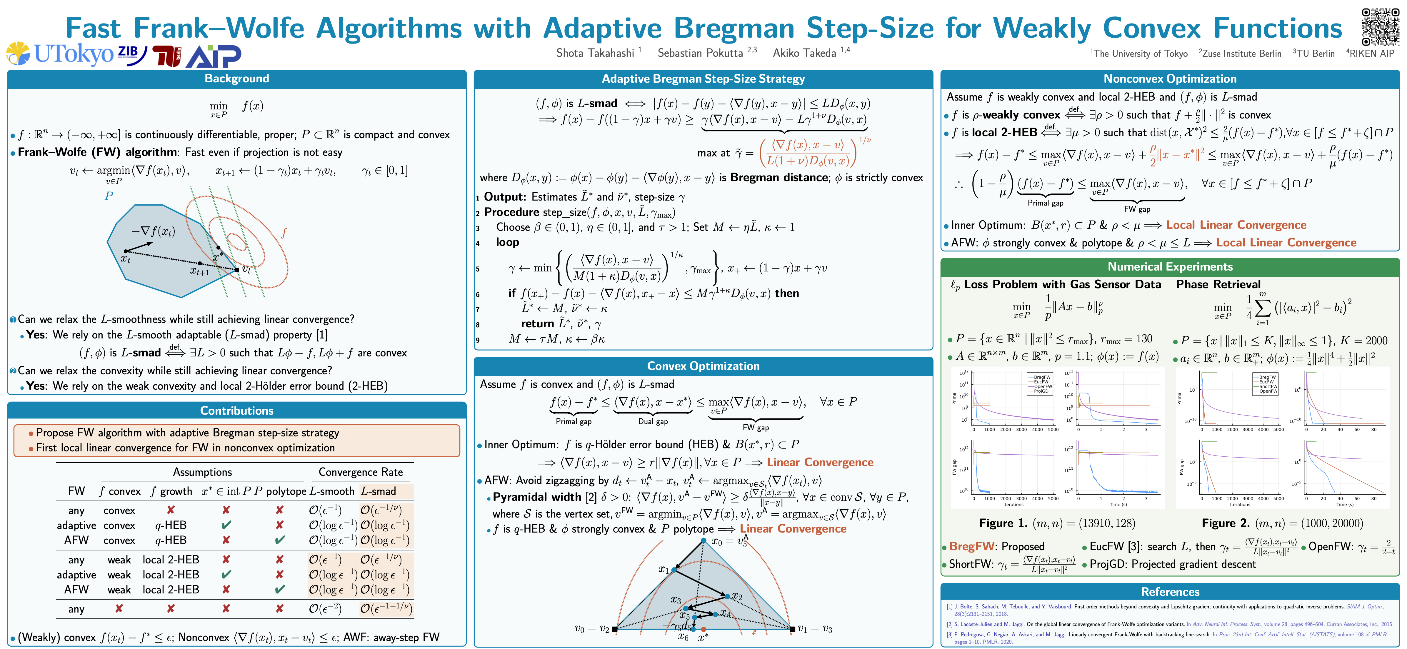- Our paper "Fast Frank–Wolfe Algorithms with Adaptive Bregman Step-Size for Weakly Convex Functions" is submitted to arXiv.
